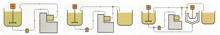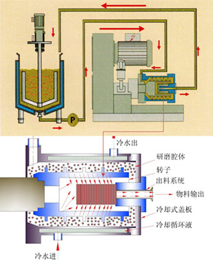 循環(huán)操作只需一個(gè)或兩個(gè)攪拌桶實(shí)現(xiàn)循環(huán)砂磨,而且攪拌桶內(nèi)粗顆粒會(huì)快速沉淀而優(yōu)科學(xué)入砂磨腔砂磨。